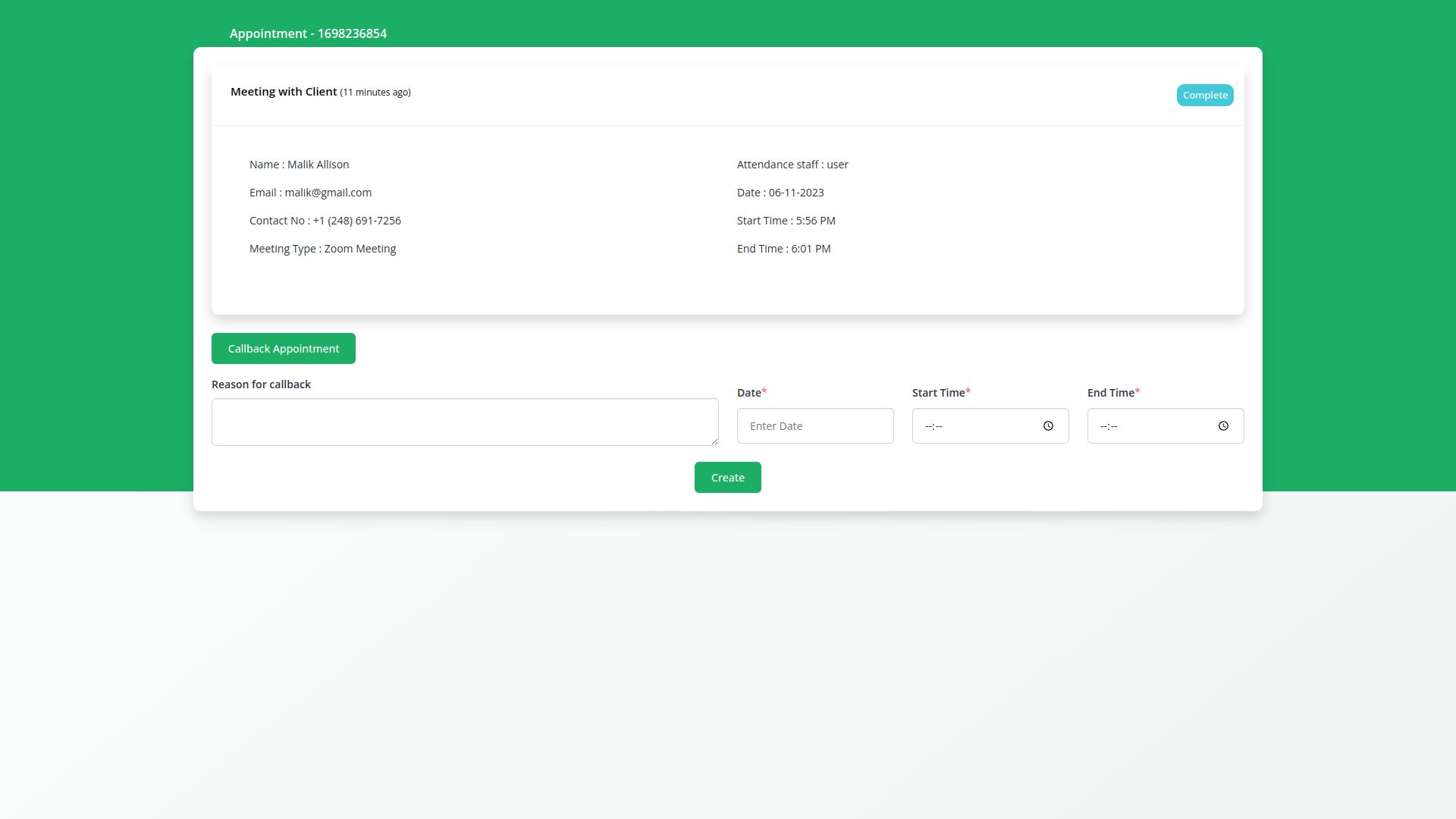 Instead of creating an appointment again, you can easily book an appointment through a callback only.